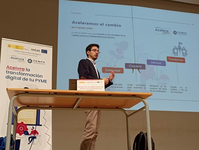 El Ayuntamiento de Elda ha organizado con la Oficina Acelera Pyme de FEMPA, un evento presencial dirigido a las empresas y autónomos de su municipio, para presentar cuáles son las actuales ayudas y subvenciones en materia de digitalización a las que pueden acceder y conocer de primera mano, cuáles son los problemas a los que se enfrentan los empresarios de la zona a la hora de dar el salto a la transformación digital.