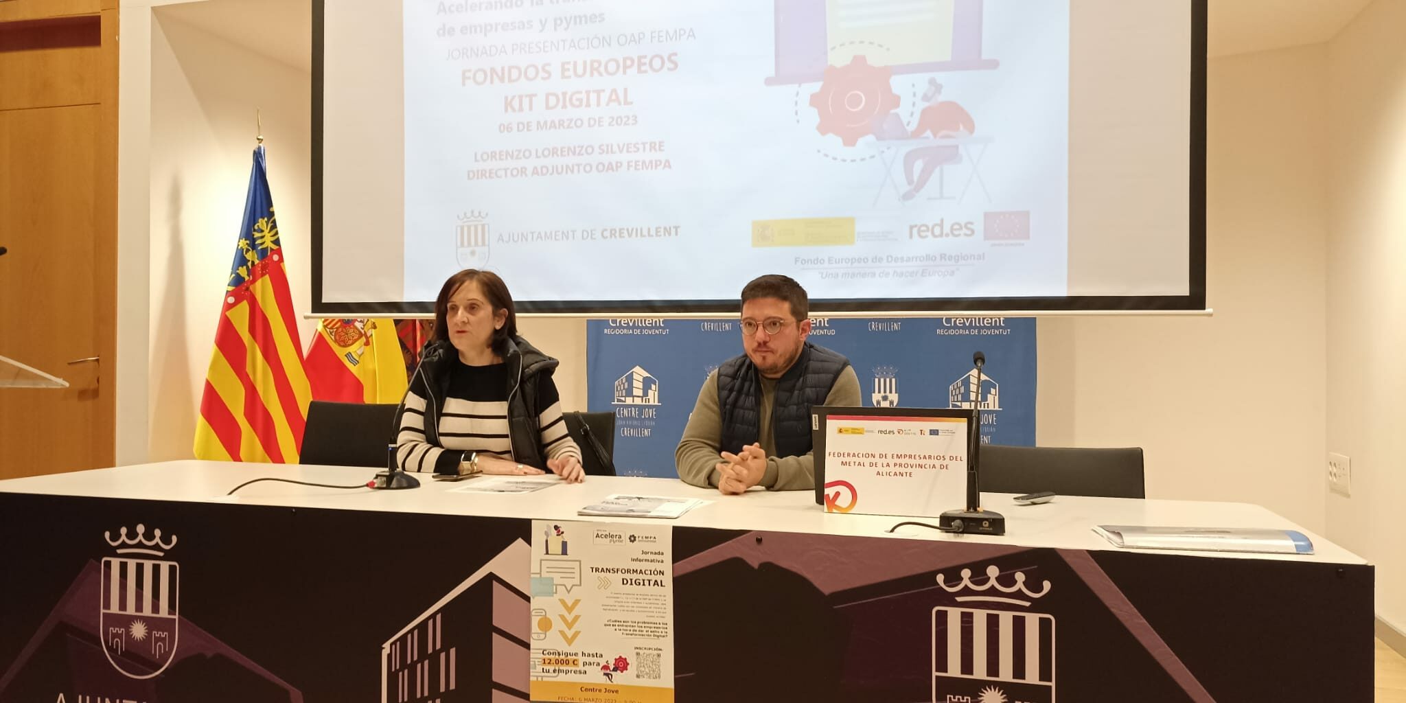 La Oficina Acelera Pyme de FEMPA ha celebrado esta mañana una productiva jornada con empresas y autónomos de Crevillent para explicarles las posibilidades que otorgan en materia de digitalización y transición ecológica las ayudas de los fondos Next Generation. El Ayuntamiento de Crevillent, representado por su concejala de Desarrollo Económico, Estefanía Sales, quien ha presentado la charla, es uno de los consistorios más activos y colaboradores en este sentido acerca el Kit Digital a las empresas del municipio ofreciéndoles la tramitación gratuita del mismo a través de la OAP de Fempa.