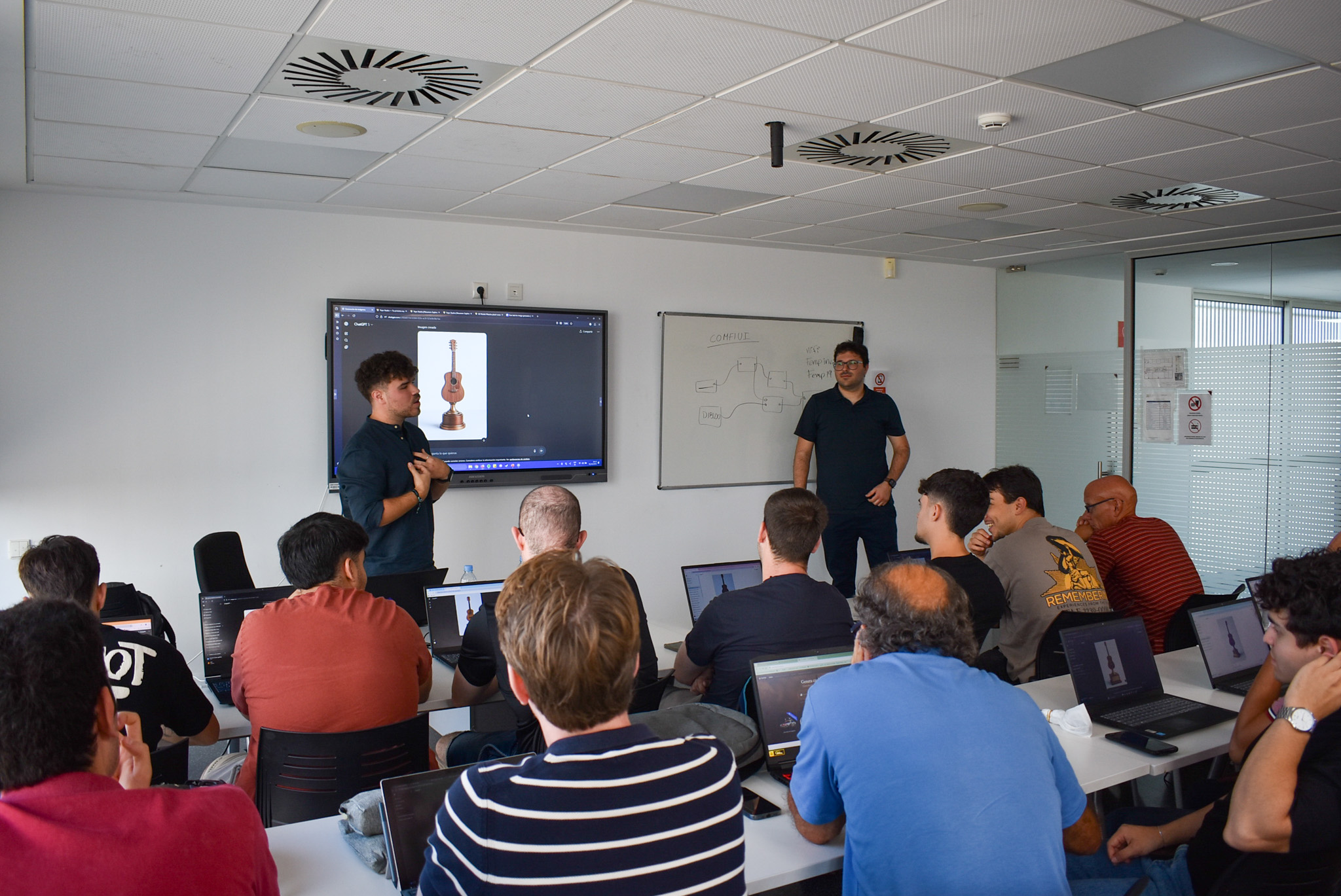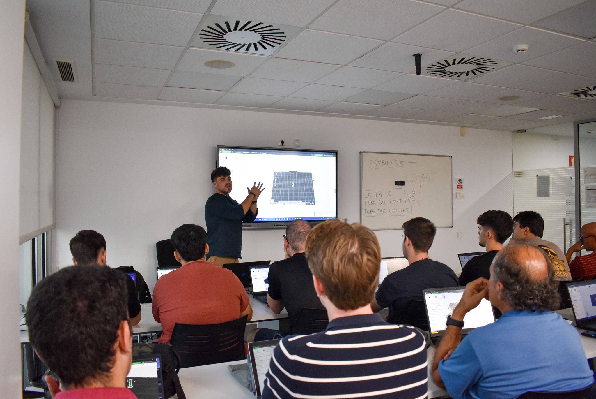 En la parte práctica, los participantes experimentaron con distintas herramientas de inteligencia artificial aplicadas al diseño 3D: