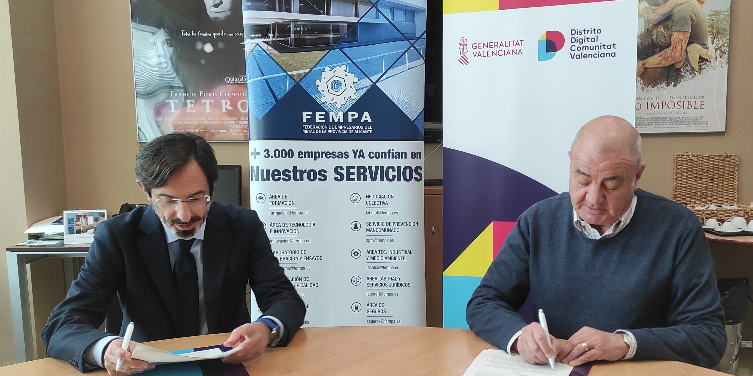 El presidente de FEMPA, Luis Rodríguez, y el director general de Sociedad Proyectos Temáticos de la Comunidad Valenciana (SPTCV), Antonio Rodes, han suscrito un Protocolo de adhesión en el que se recoge el marco de colaboración entre ambas entidades.