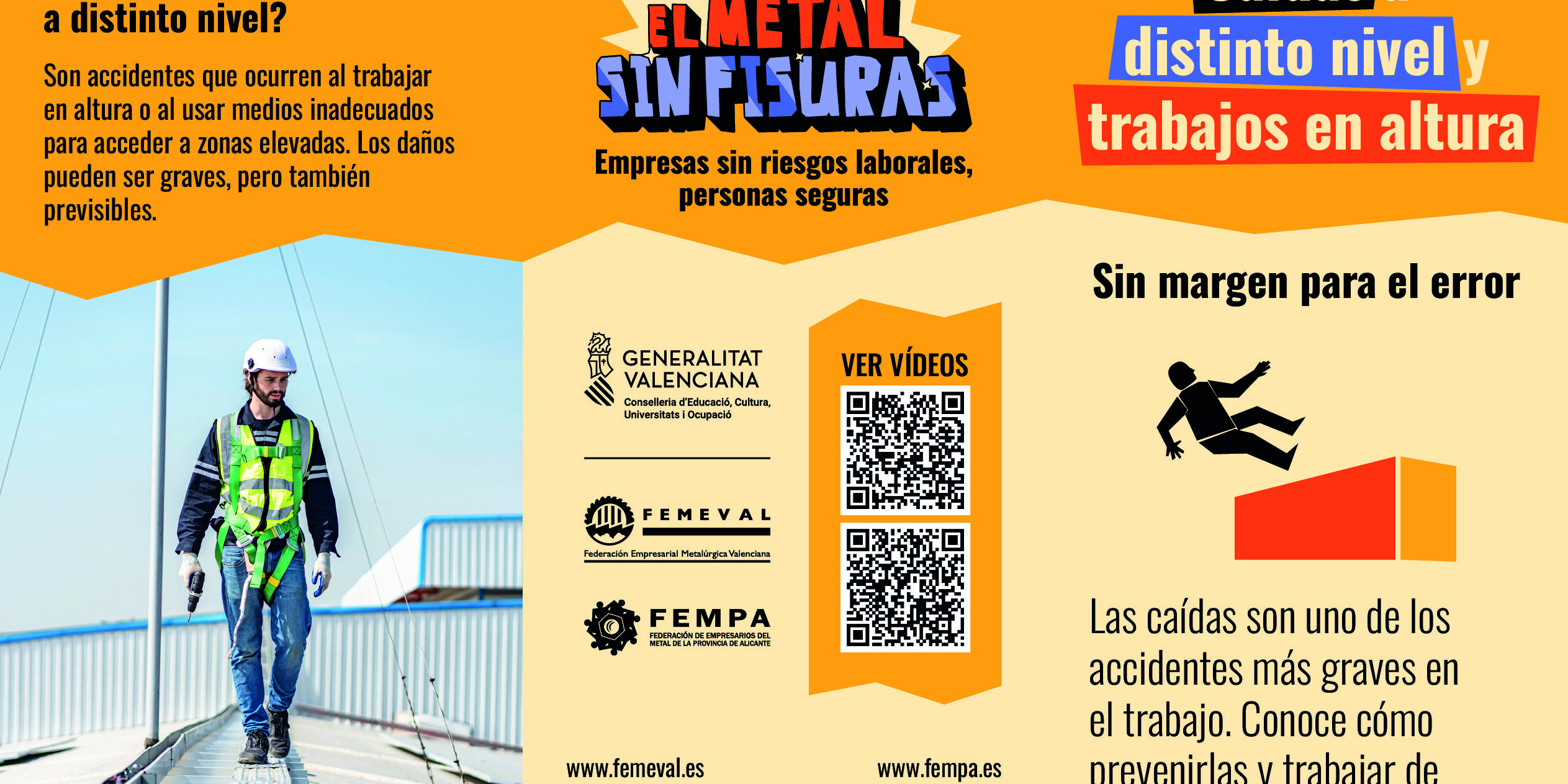 Dentro del proyecto de prevención de riesgos laborales, se ha desarrollado una serie de vídeos, carteles e imágenes informativas para concienciar sobre los riesgos de las caídas a distinto nivel, una de las principales causas de accidentes laborales. Estos materiales explican de manera clara y visual en qué consisten estos incidentes, sus consecuencias y las mejores prácticas para prevenirlos, ayudando a las empresas y trabajadores a reforzar su conocimiento y adoptar medidas de seguridad más efectivas en su entorno laboral.