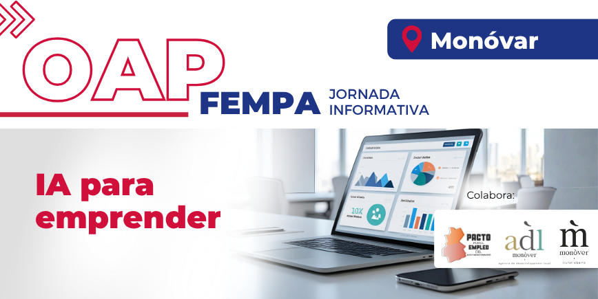 Apúntate La inteligencia artificial protagoniza el cierre del ciclo Acelera para personas emprendedoras en Monóvar El ciclo de seis jornadas promovido en Monóvar por la Oficina Acelera Pyme FEMPA llegará a su fin el 1 de junio de 2026 con una sesión centrada en una de las temáticas más actuales: la inteligencia artificial. El taller…