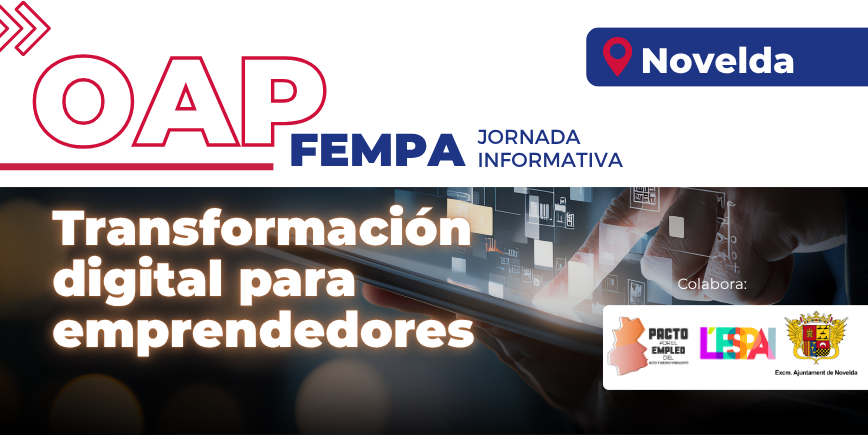 Apúntate Digitalizar con cabeza: una sesión en Novelda para detectar mejoras reales en el negocio El 2 de junio de 2026 llegará a Novelda una de las sesiones más transversales del ciclo Acelera: “Transformación Digital para emprendedores”. La jornada está impulsada por la Oficina Acelera Pyme FEMPA en colaboración con el Ayuntamiento de Novelda, L’Espai…