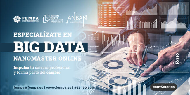 Modalidad:100 %Online Duración: 90 horas Inicio: 05/10/2021 Cuando hablamos de Big Data nos referimos a conjuntos de datos cuyo tamaño (volumen), complejidad (variabilidad) y velocidad de crecimiento (velocidad) dificultan su captura, gestión, procesamiento o análisis mediante tecnologías y herramientas convencionales. La recopilación de grandes cantidades de datos y la búsqueda de tendencias dentro de los…